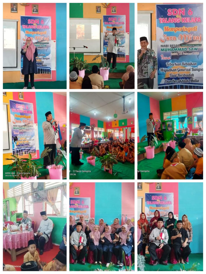 Hari ini Sabtu 25 Februari 2023 telah dilaksanakan acara Peringatan Isra' Mi'raj Nabi Muhammad SAW 1444 H di SDN 6 Talang Kelapa. Berjalan lancar tanpa kendala.